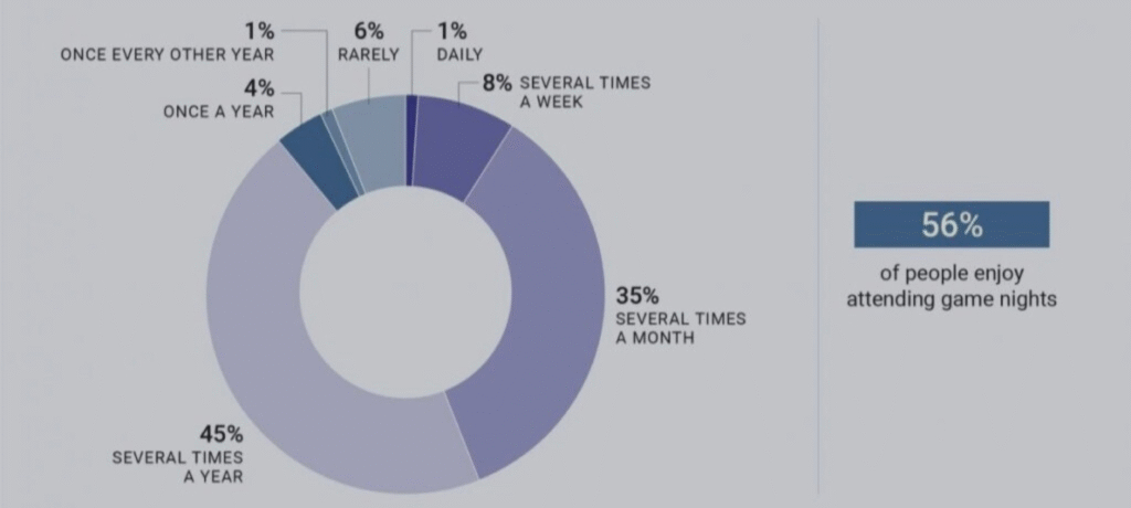 Just 33% of board gamers play their favorites at a game store. As many as 40% prefer staying home to enjoy a board game. Only 4% can play a game at a bar, café, or anywhere.