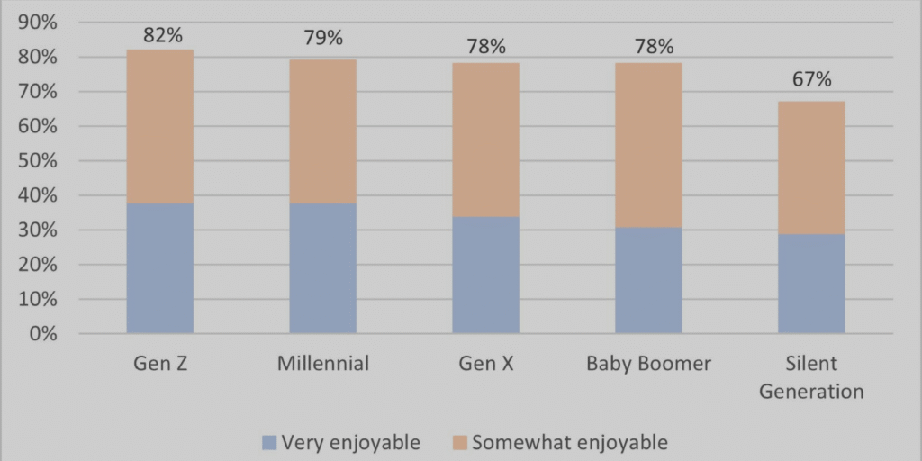The younger generation enjoyed playing board games more than older folks. Up to 38% of survey respondents said they enjoy playing tabletop games. On the other hand, just 29% of older folks said they enjoyed board games. This shows that Gen Z has the largest share of the board game market.
