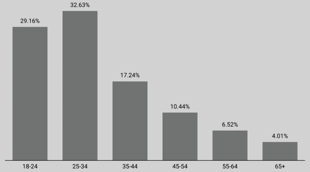 Statistics show that this streaming service had the highest number of users aged 35-44 years, accounting for 67% of users with subscriptions. On the other hand, the 18-34 age group accounts for 56% of Amazon Video subscribers.