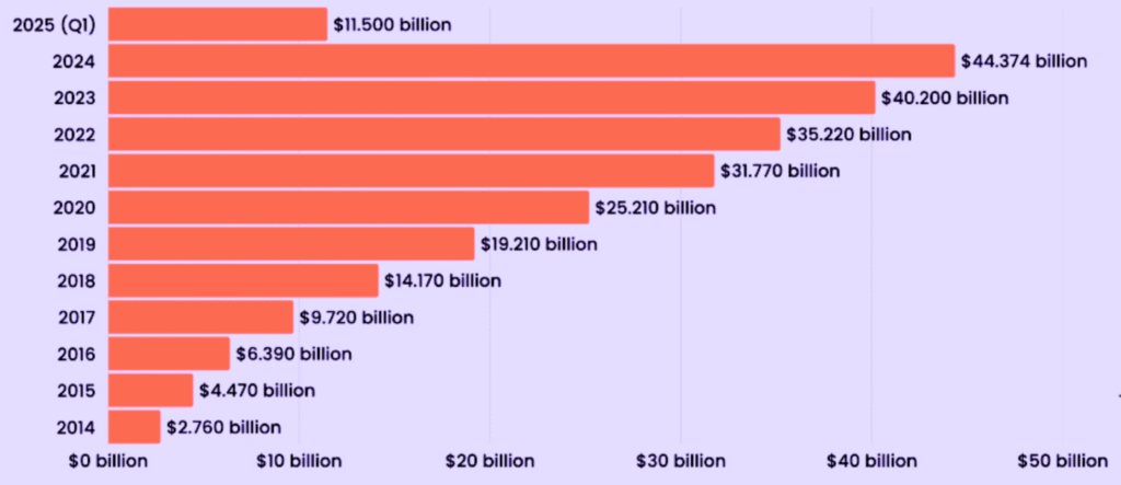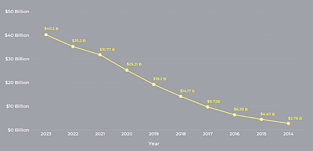 Statistics show that an estimated $25.21 billion is generated annually from Prime and other subscription membership services. In 2023, Prime membership generated $40.2 billion in revenue, and Prime alone holds 53.1% of membership fee revenue in the US.