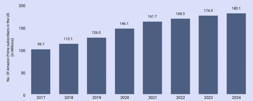 5. Amazon Prime’s subscriber base has grown by twofold within five years.