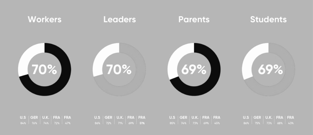 29. You know what’s disheartening? Out of those 16,500 employees surveyed, only a tiny minority, just 35%, ever get to unleash their creativity in the workplace. That means two-thirds of the workforce is missing out on opportunities to bring fresh, innovative ideas. It highlights how critical it is for companies to prioritize fostering more creative environments where everyone’s voice and perspectives are valued and encouraged.