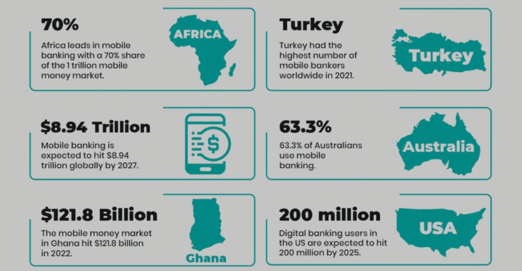 1. Mobile banking is likely to hit $3.3 billion worldwide at the close of 2025.