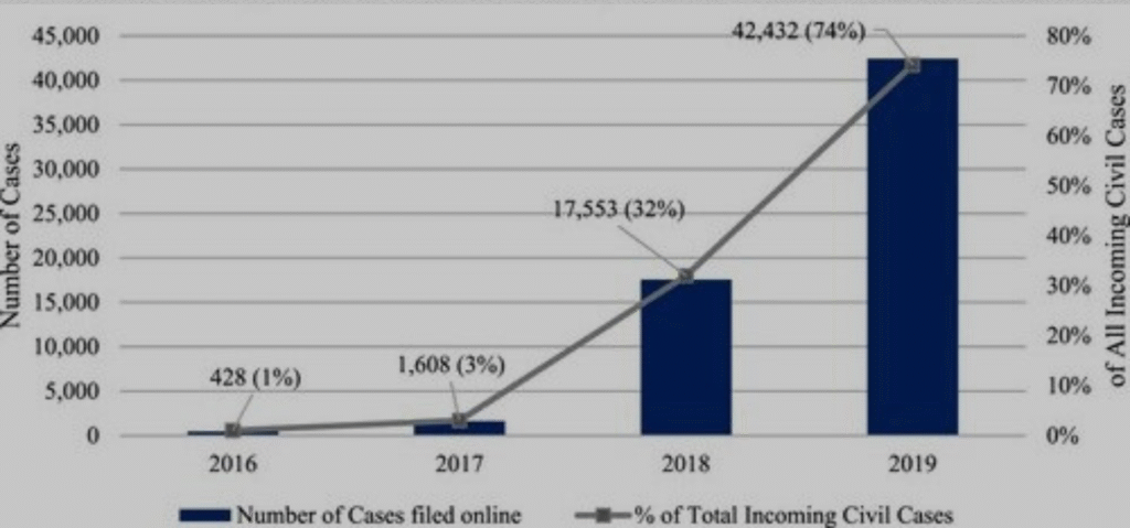 36. Since the pandemic, courts have recorded increased and regular use of virtual courts, with over 6,000 hearings daily in California.