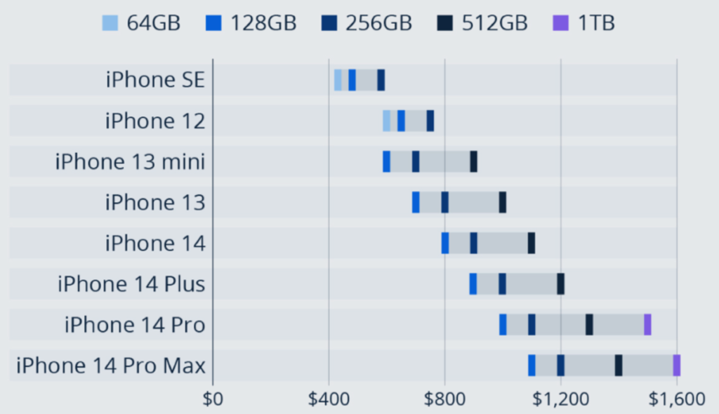 A large volume of Apple sales year in and out is from its sales of tech devices like the iPhone series. Here is a breakdown of some of Apple’s sales statistics in recent times.