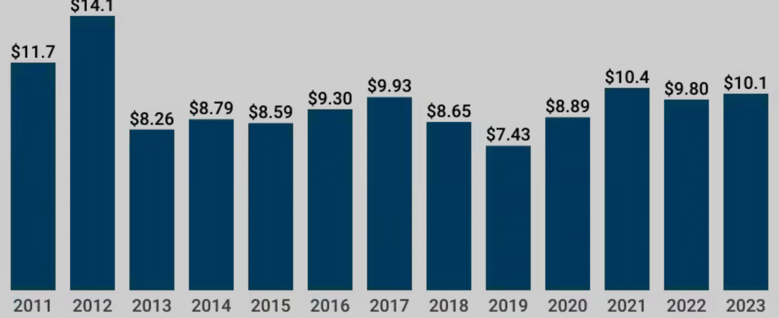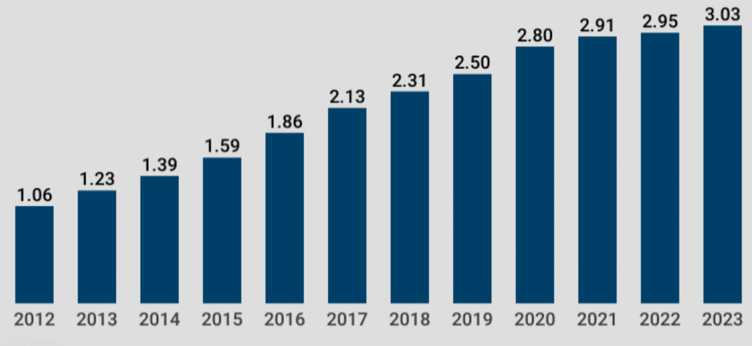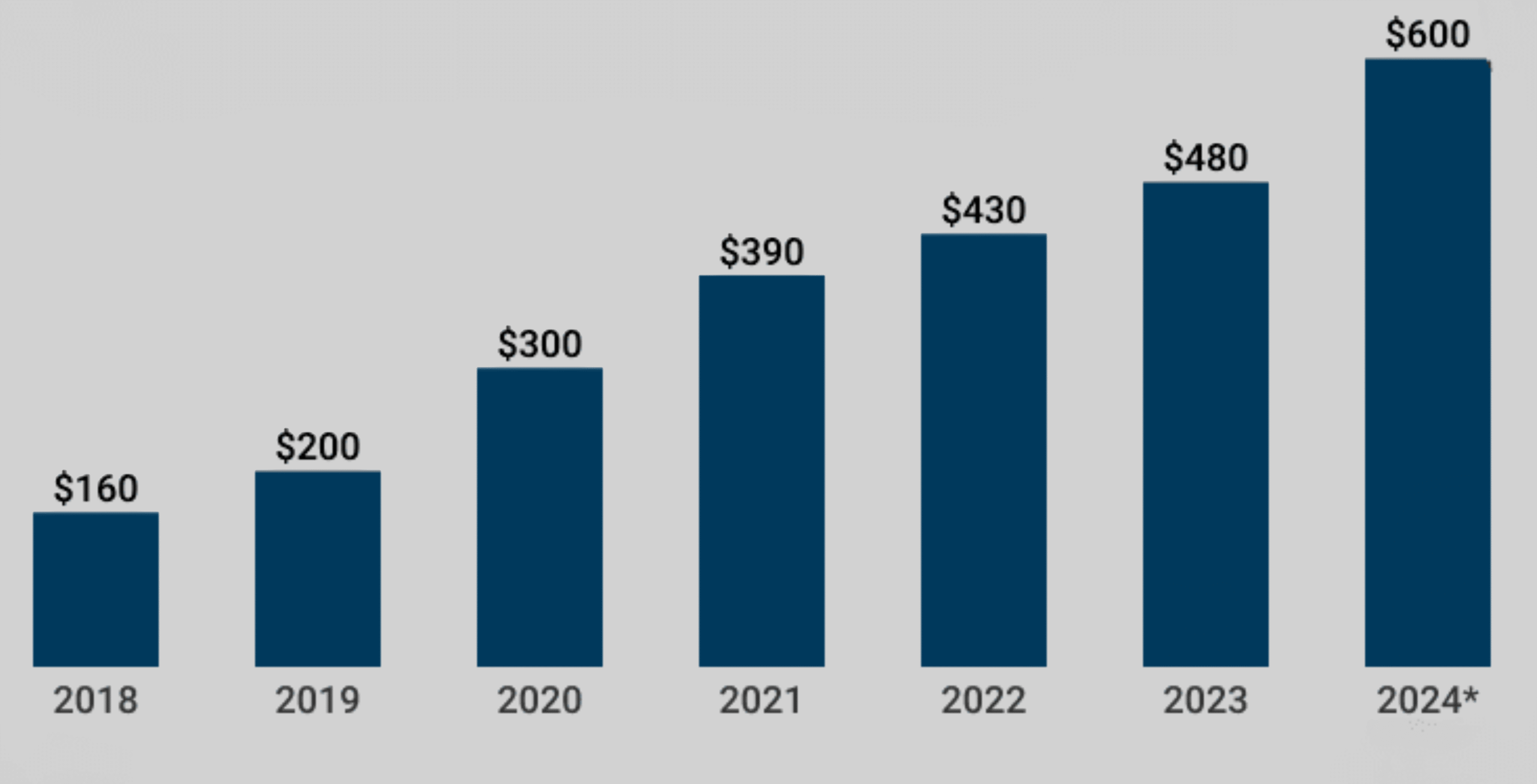 39. The platform’s yearly sales range between $611.28 billion and $648.12 billion (a 6.03% increase from 2022).