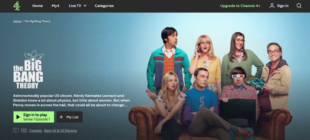 This is a fantastic option if you want to watch all 12 seasons of “The Big Bang Theory” and all six seasons of “Young Sheldon” anywhere in the world. The best part? The service is VPN-compatible, so it always works, irrespective of location. What a convenient and cost-effective choice! Sign up on Channel 4, connect to a UK server on your VPN, and enjoy your favorite shows without malware or lag. Moreover, follow the steps we provided in the beginning to bypass geo-restrictions legally and enjoy unlimited streaming.